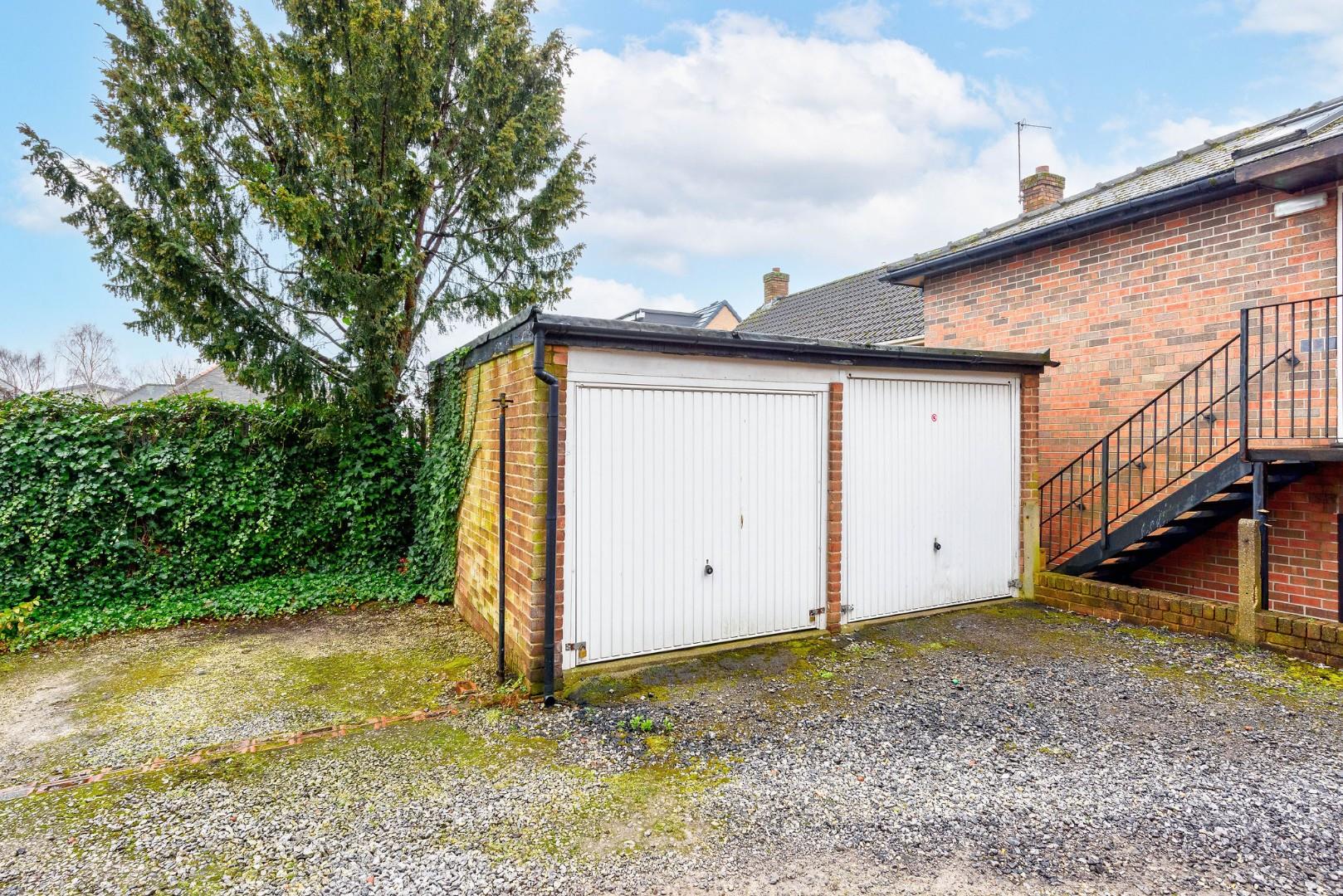 The communal hallway has a storage cupboard. There is a garage to the rear of the block.