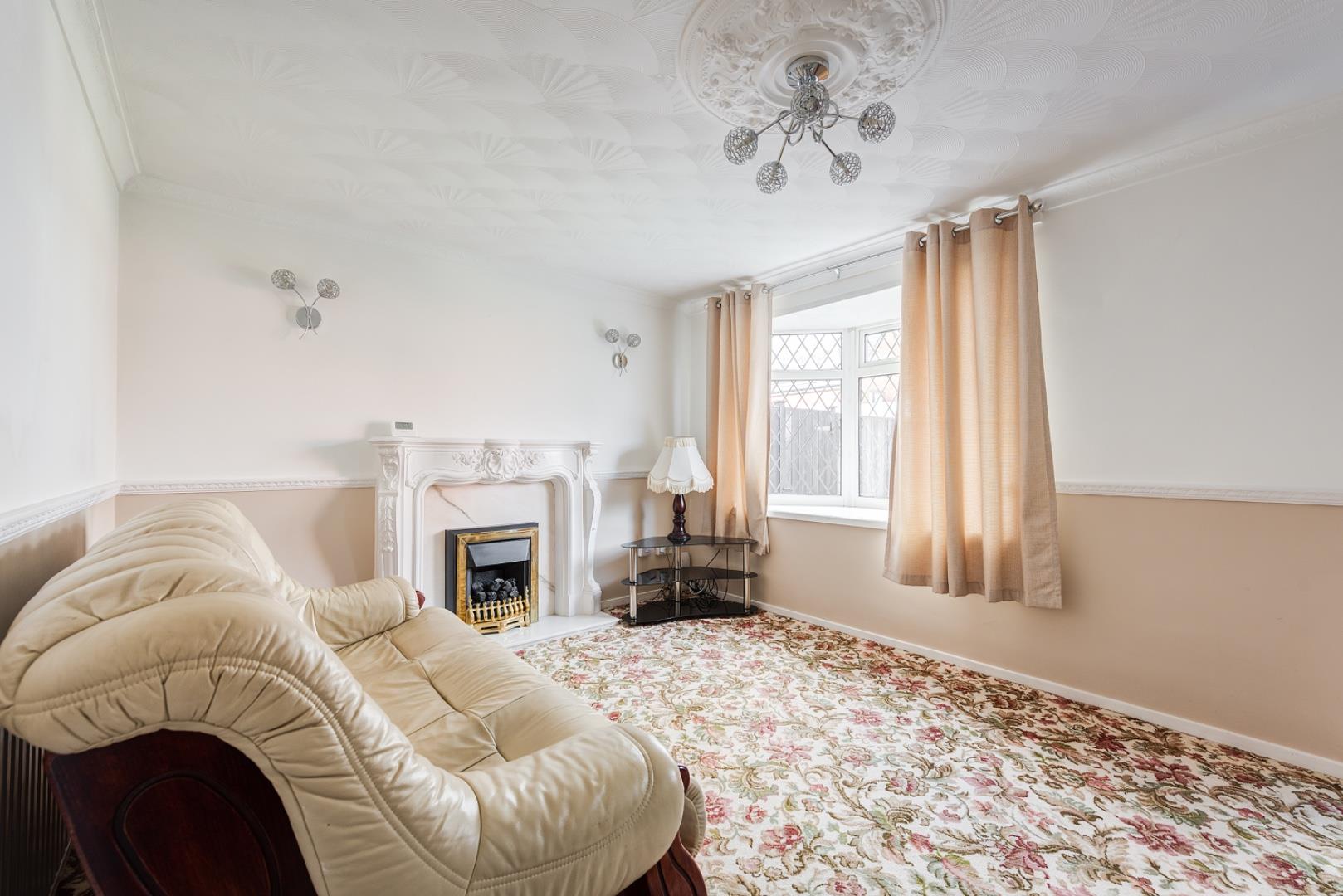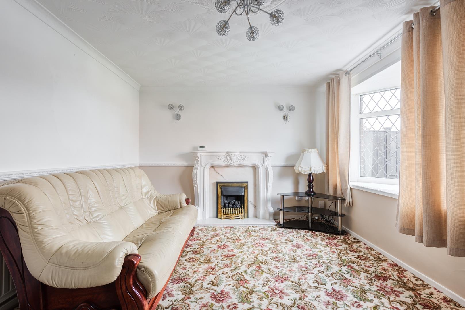 The lounge provides a welcoming space with a bay window that fills the room with natural light. It features a focal point fireplace with decorative surround and is comfortably fitted with plush carpeting. The room enjoys a neutral palette, offering a blank canvas for personal touches and is accessed directly from the hallway, enhancing its convenience and flow. External door provides access to the rear garden